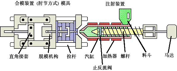 注塑成型機可區分為合模裝置與注射裝置。